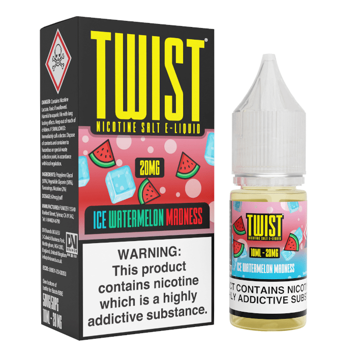 Introducing the Twist Nic Salt - Ice Watermelon Madness, a top brand product. This 10ml bottle is a customer favourite, known for its refreshing fruit flavour profile.
