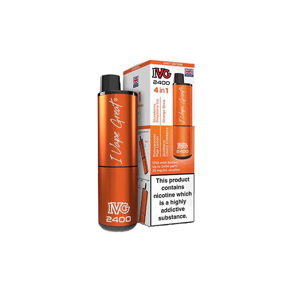 Each pod contains 2 ml of 20 mg nicotine salt e-liquid, providing smooth, satisfying mouth-to-lung draws with exceptional flavour consistency. Powered by a long-lasting 1,750 mAh battery and enhanced with mesh-coil technology, the IVG 2400 produces rich vapour and bold taste from the first puff to the last.